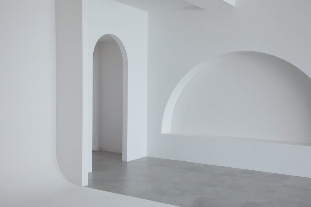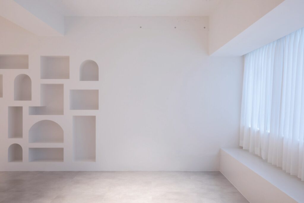 やわらかな曲線を描くアーチは、空間に立体感を加えるアクセント。ベンチのように腰かけて撮影もでき、さまざまな構図に対応します。
